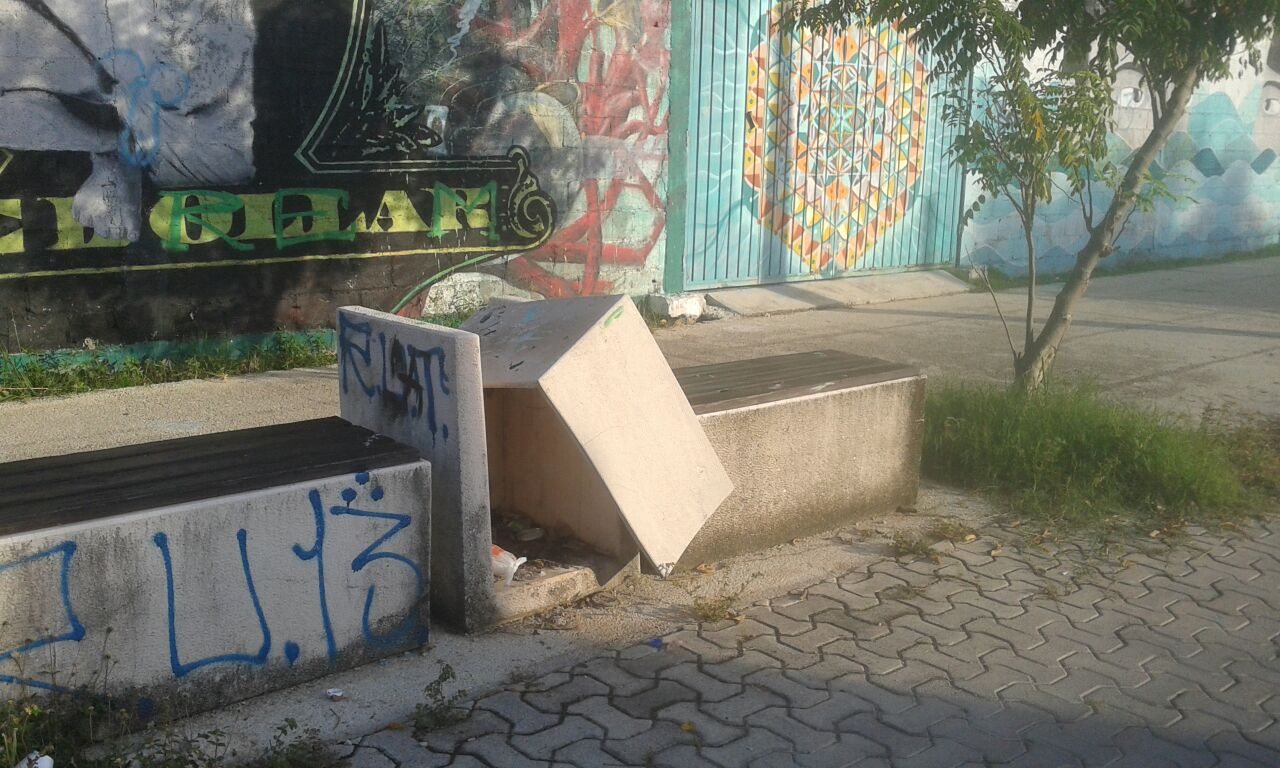 Las bancas están rotas, cayéndose a pedazos con el adoquín levantado y varias de las luminarias no funcionan, con andadores en mal estado y los espacios grafiteados.