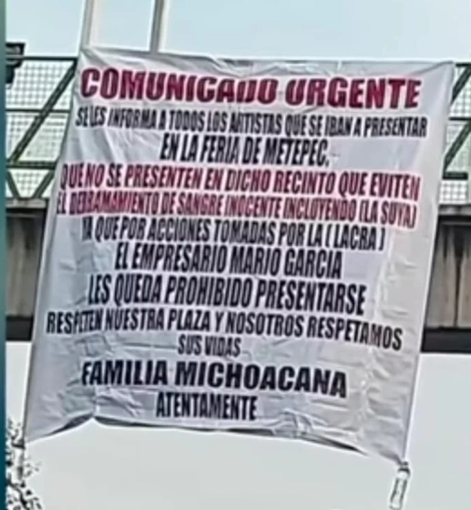 La amenaza incluía no sólo al público, sino a la banda ‘La Adictiva’ y a los demás artistas anunciados para la Feria de Metepec, por ello les exigían…