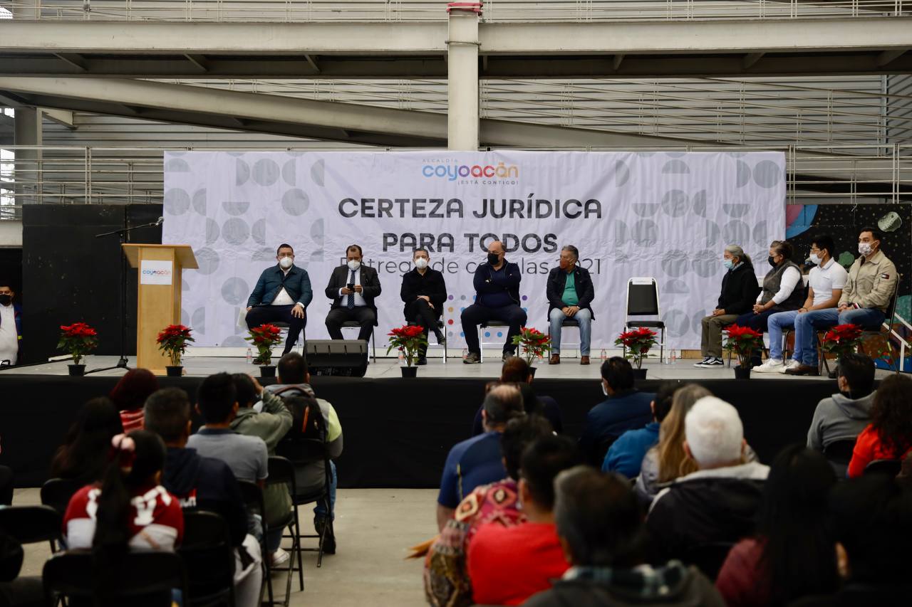 “Por primera vez en Coyoacán en más de cinco años, se hace otra vez una entrega de cédulas de empadronamiento, esto que debería ser un acto cotidiano, regular que acreditara la posibilidad de venta de cada uno de ustedes se convirtió en un acto oculto, que los obligaba a la irregularidad.