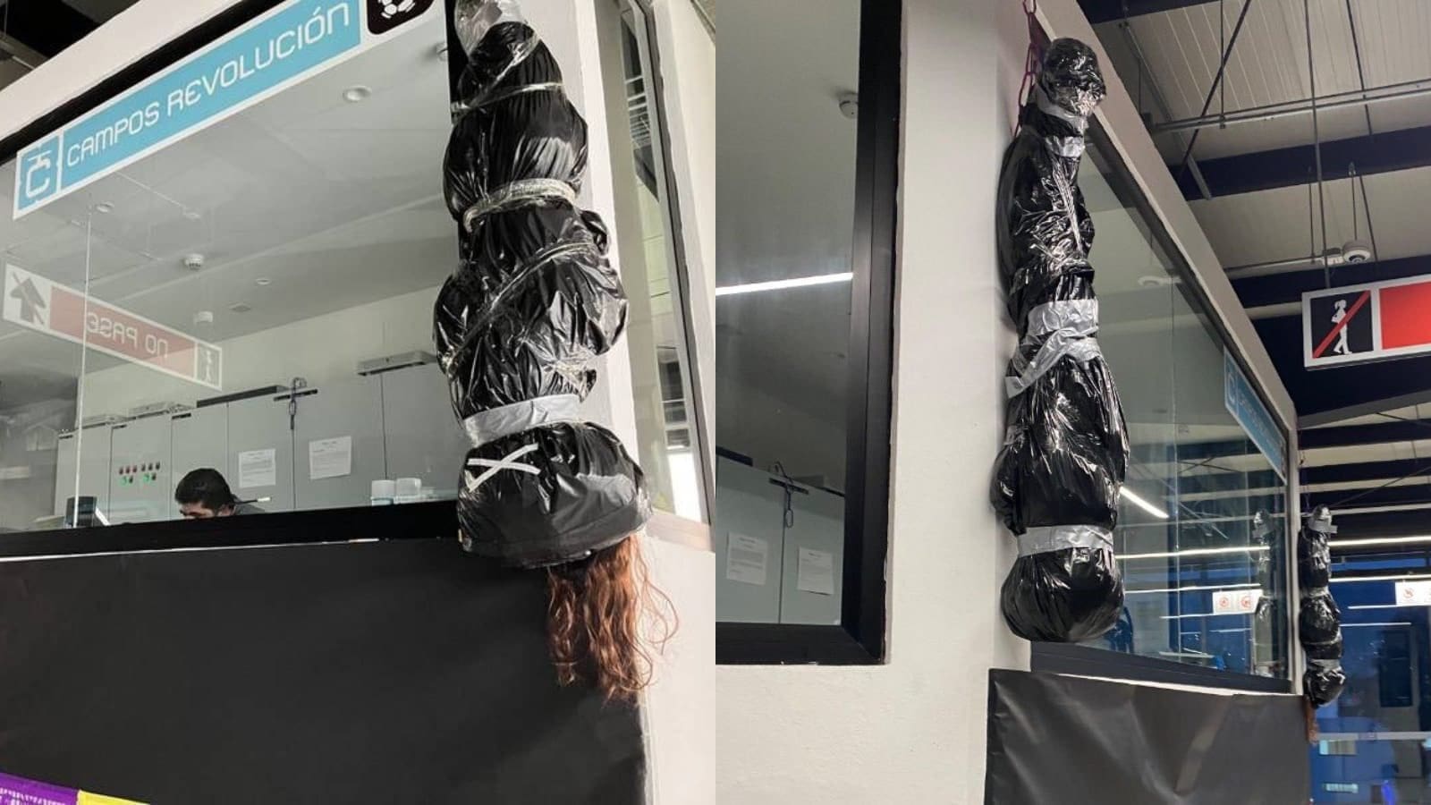 Los “cuerpos colgando”, simulando el modus operandi de bandas delictivas en el país, los colocaron en la Línea 1 del Cablebús, dentro de la estación Campos Revolución, donde debido a la polémica ya ordenaron su retiro de forma inmediata.