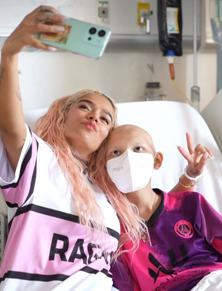 Karol G no sólo ofreció tres exitosos conciertos en la Ciudad de México, sino que, antes de despedirse de la capital, la cantante colombiana hizo una última parada al Hospital General de México Dr. Eduardo Liceaga y a uno de los centros de la Red Nacional de Refugios, para visitar a niñas y niños con cáncer, a quienes les compartió un poco de su música y les interpretó una de sus composiciones más exitosas; “Mientras me curo el corazón”.