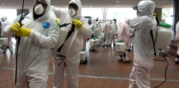 Tres sujetos vestidos con trajes para realizar sanitización, que se han popularizado con la pandemia, asaltaron este viernes, un banco sel Centro Histórico de la Ciudad de México, informaron autoridades capitalinas.