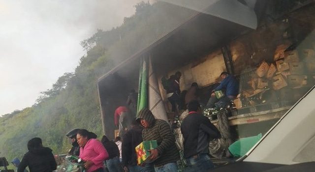 En la autopista de Veracruz en la zona de Cumbres de Maltrata y Acultzingo un tráiler comenzó a incendiarse. Ante esta situación, las personas que pasaban por la carretera se bajaron a robar las cervezas que transportaba el camión.