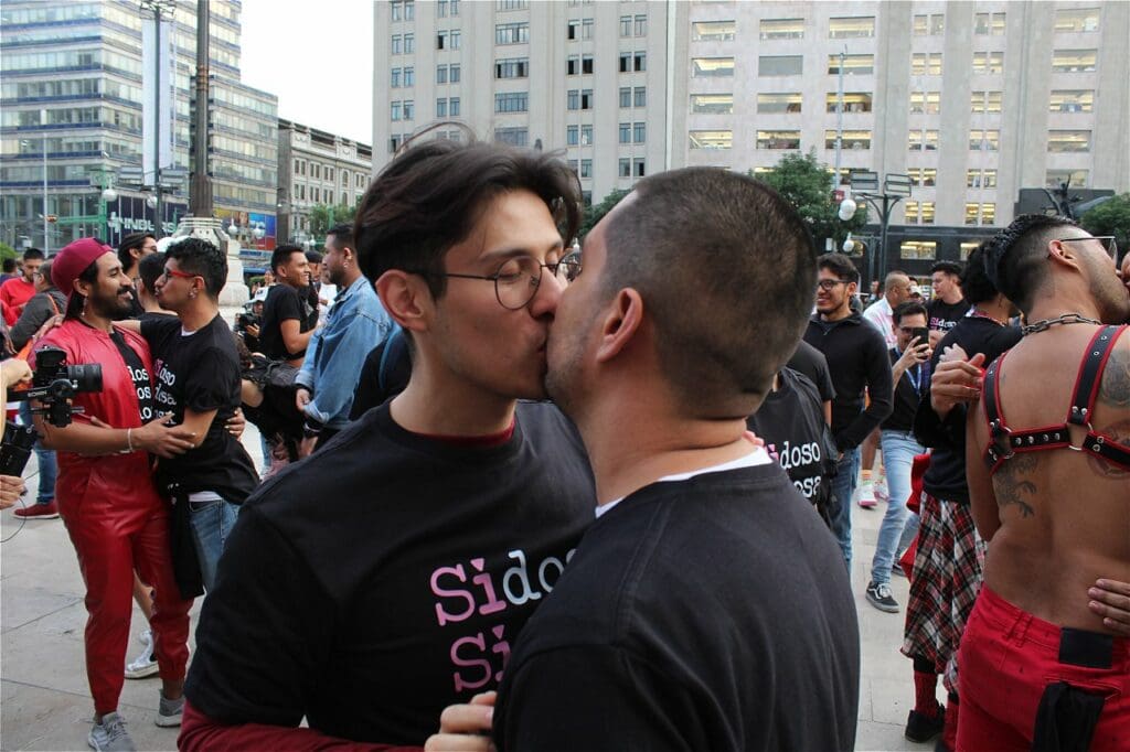 Por otro lado, uno de los asistentes al “Besotón Sidoso” identificado como Rodrigo Vázquez dijo que sus motivos para asistir a la convocatoria fueron la reivindicación del acto del beso como persona quien vive con VIH y comentó que considera que el beso representa el derecho al goce que merecen independientemente de su estatus serológico.