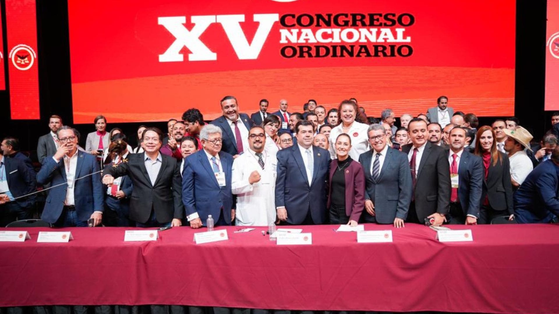 ‘’Vivimos momentos importantes de definición, por eso desde este decimoquinto congreso ordinario, hoy doctora Claudia Sheinbaum, ratificamos nuestro compromiso con los valores de la Cuarta Transformación’’, celebró.