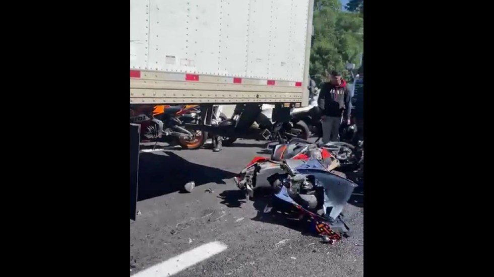 Metros adelante, dos motocicletas quedaron debajo de un tráiler, cerca de una curva pronunciada, lo que provocó la muerte de ambos motociclistas.