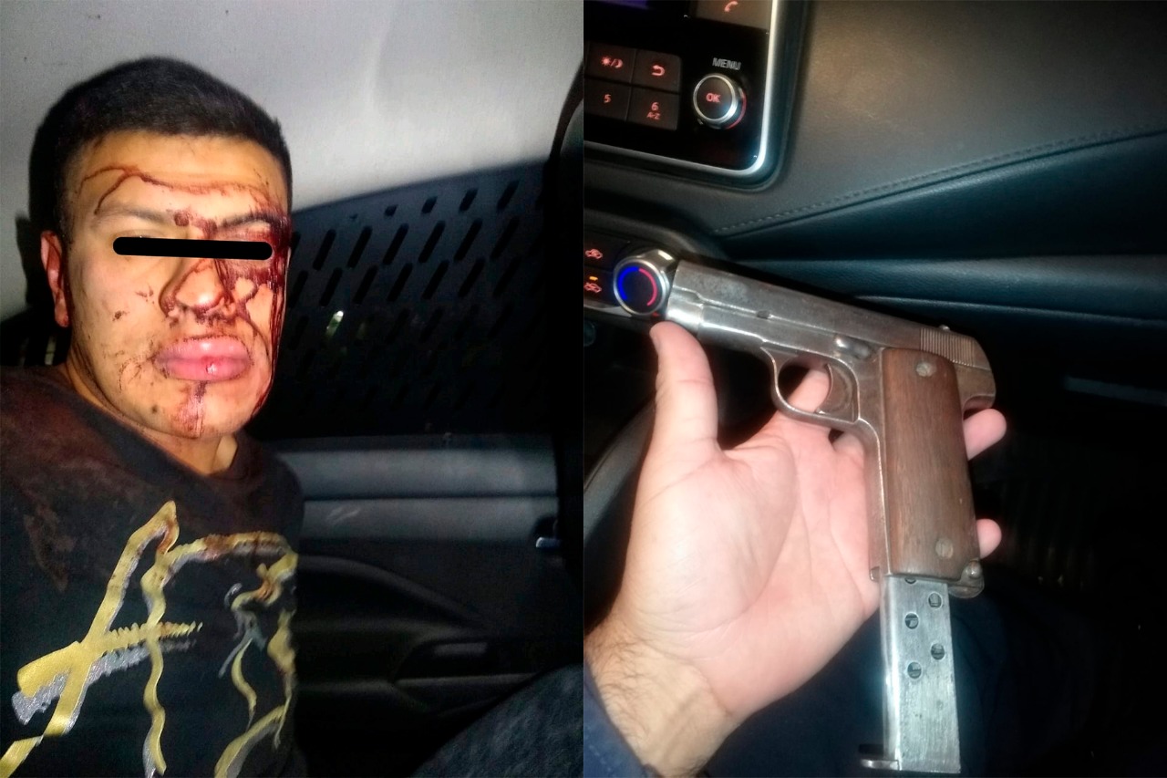 Policías municipales detuvieron al sujeto, identificado como Edgar “N”, de 22 años de edad, quien llevaba en su cintura una pistola escuadra calibre 22 milímetros, sin cartuchos.