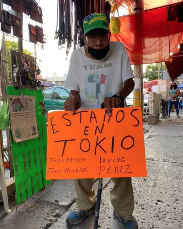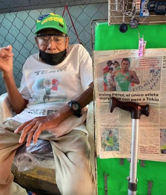 México.- Un abuelito mexicano decoró su puesto ambulante en apoyo a su nieto, quien competirá en los Juegos Olímpicos de Tokio 2021.