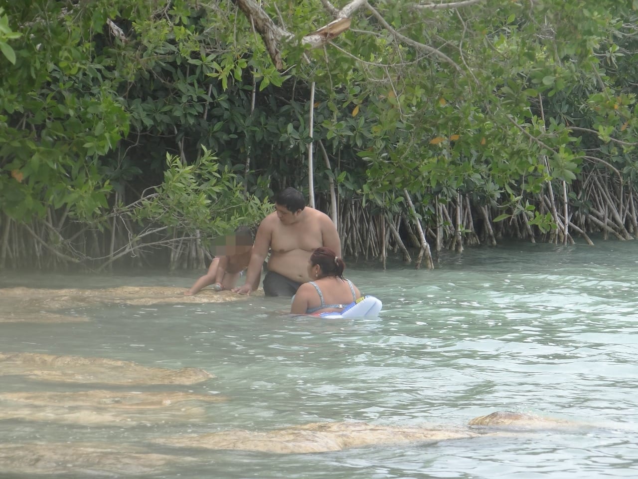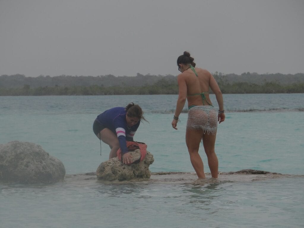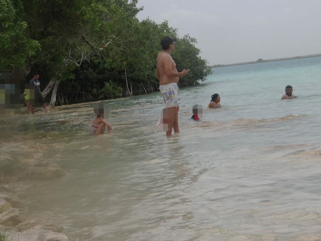 Bacalar, Quintana Roo.- Con total irresponsabilidad, una familia de presuntos priístas fue acusada de ecocidio luego de tomarse fotografías sobre los estromatolitos, en Bacalar.