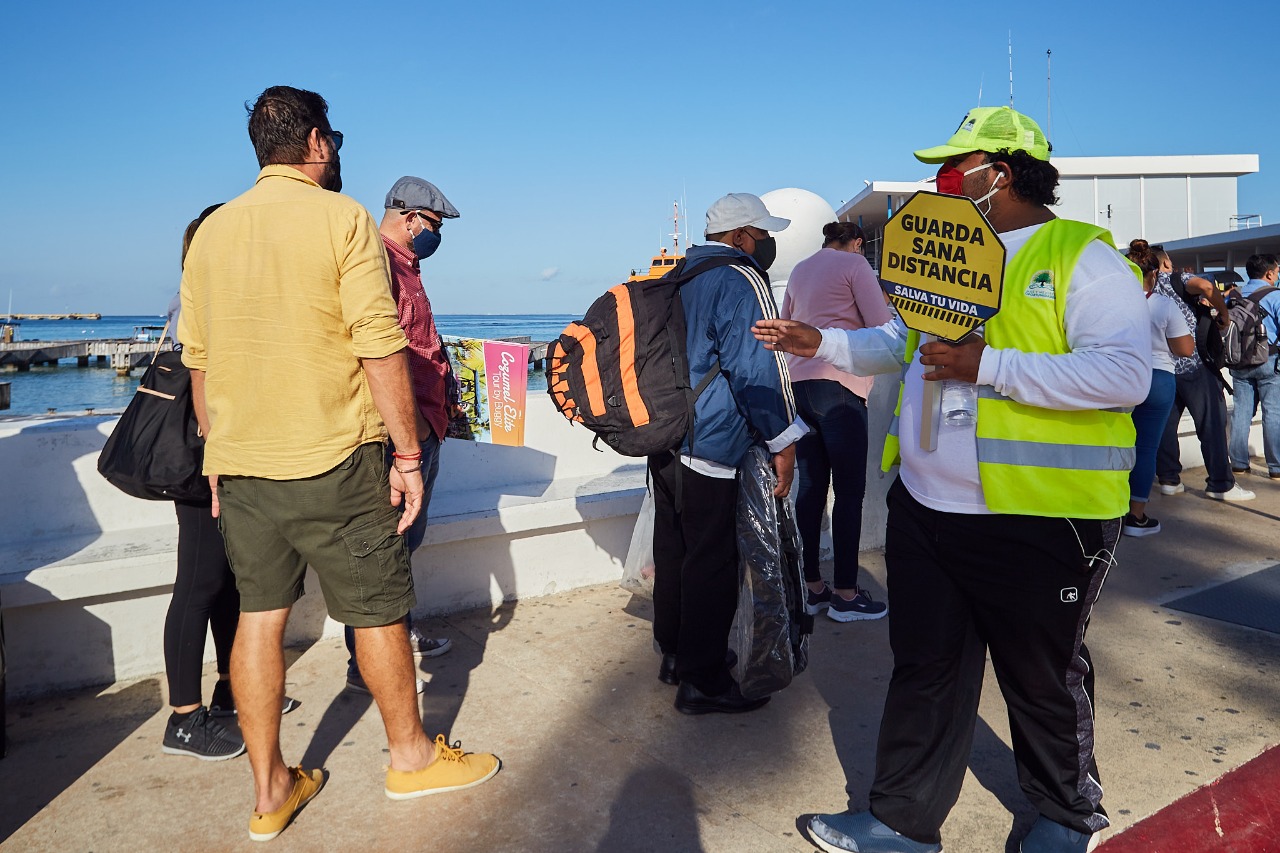 En este sentido, recordó que personal del Gobierno Municipal de Cozumel ha trabajado en la terminal marítima, haciendo un exhorto a los pasajeros que esperan su turno para viajar a la Isla de Cozumel, con el fin de que respeten las medidas que aplican por la contingencia sanitaria, como lo son el uso del cubrebocas y la sana distancia.