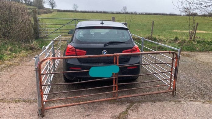 Reino Unido.- Un granjero decidió instalar una cerca metálica alrededor de un BMW en represalia a un conductor que estacionó su automóvil frente a las puertas de las tierras de cultivo de un campo en Gales, en Reino Unido, impidiéndole atender a su rebaño, reporta Wales Online.
