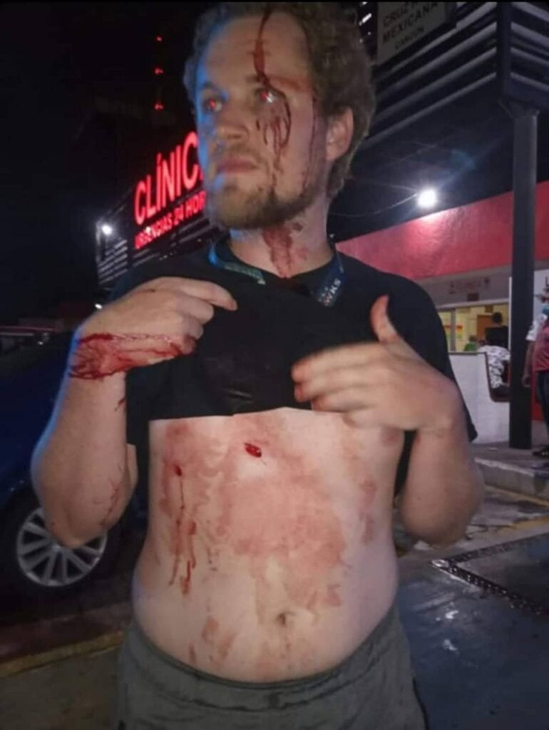 El caso escaló a mayores, señaló la usuaria Astrid Beltrán, pues mientras esperaban atención en las instalaciones de la Cruz Roja de Cancún, llegó una patrulla con otros tres turistas ensangrentados que denunciaron también haber sido víctimas de dos taxistas, quienes viajaban a bordo de la unidad 6940 del Sindicato de Taxistas Andrés Quintana Roo.