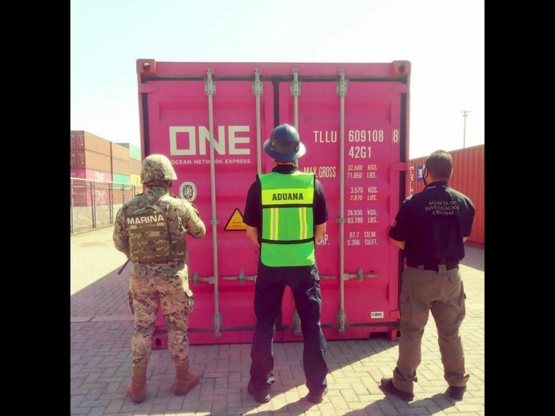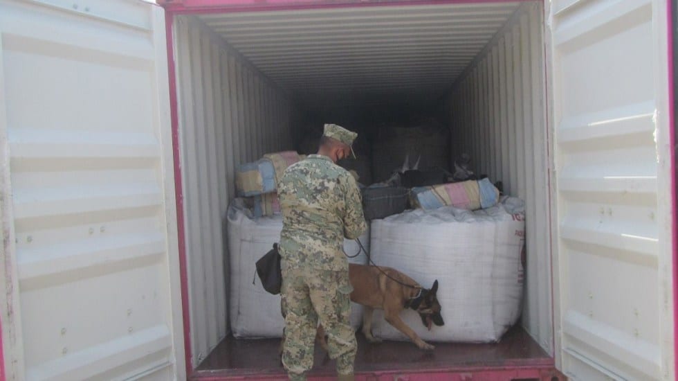 El hallazgo se efectuó en coordinación con la Unidad Naval de Protección Portuaria (UNAPROP) No. 63 adscrita a la Décima Zona Naval y la Aduana Marítima del puerto, informó la Semar, con apoyo de binomios caninos, revisaron la mercancía y certificaron que se trataba de estupefacientes.