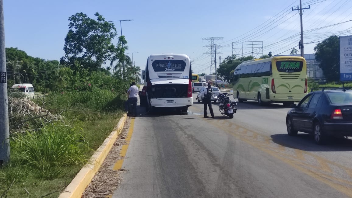 Este autobús salía del hotel H10, en la carretera federal 307, al norte de Playa del Carmen, pero ingresó de forma abrupta a la carretera, cruzando hasta el camellón central. Una camioneta que venía con dirección de sur a norte sobre esta vialidad no alcanzó a frenar y acabó estrellándose en la parte posterior del autobús.