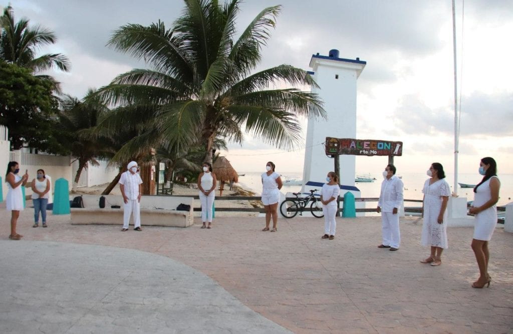 Al amanecer, se llevó a cabo una ceremonia para conmemorar el Día Internacional de la Paz, que estuvo encabezada por la presidenta y la directora general del Sistema para el Desarrollo Integral de la Familia (DIF) de Puerto Morelos, Adriana Nava Gómez y Yamili Alvarado Crespo, respectivamente.