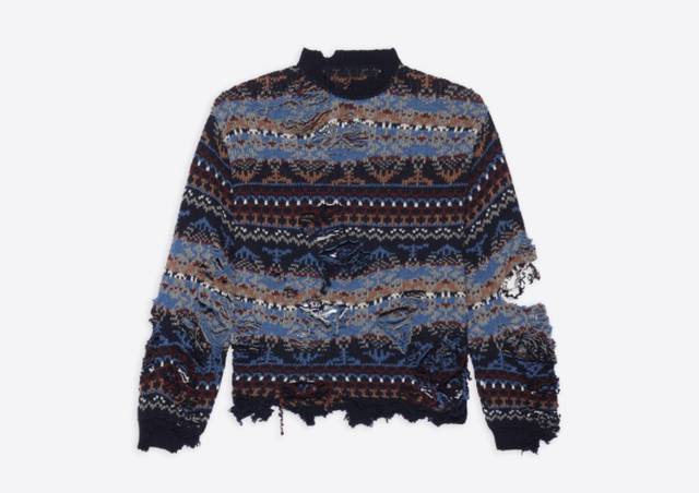 En su página web, Balenciaga vende el suéter agujerado y desteñido con la idea publicitaria de que fue diseñado para ser destruido.