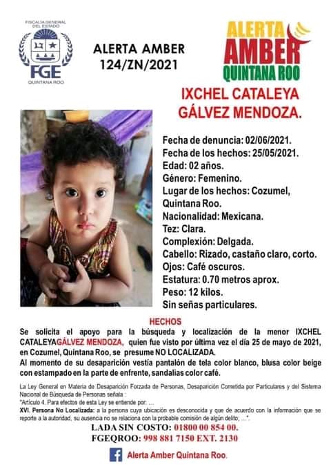 Para efecto de su búsqueda, la Fiscalía General del Estado de Quintana Roo emitió una alerta Amber.