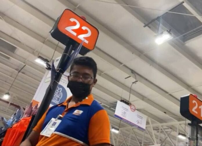 Playa del Carmen.- Cajero de Chedraui Velamar en Playa del Carmen es grabado tosiendo con la nariz fuera del cubrebocas mientras registra productos.