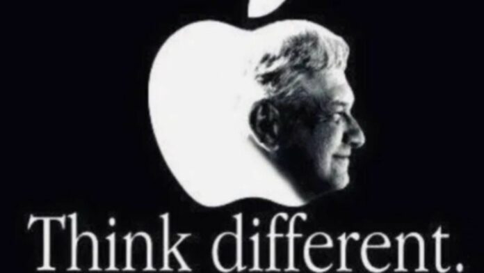 México.- La cuenta oficial de Morena en Twitter, el partido Andrés Manuel López Obrador, utilizó un logotipo y una campaña clásica de Apple para promover al Presidente de México, en lo que podría ser un caso serio de plagio.