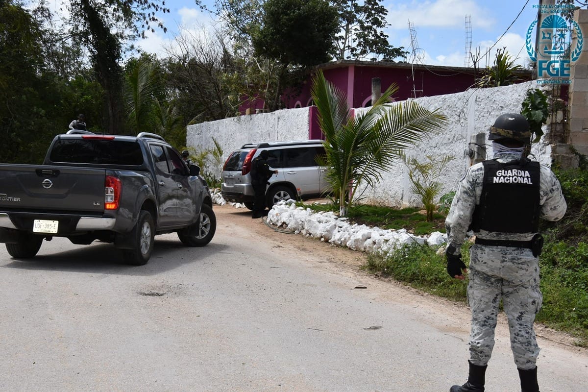 Personal de la Guardia Nacional y 20° Regimiento de Caballería Motorizada del Ejército Mexicano, brindó seguridad perimetral durante la diligencia ministerial. El domicilio fue asegurado y quedó resguardado por la Policía Quintana Roo.