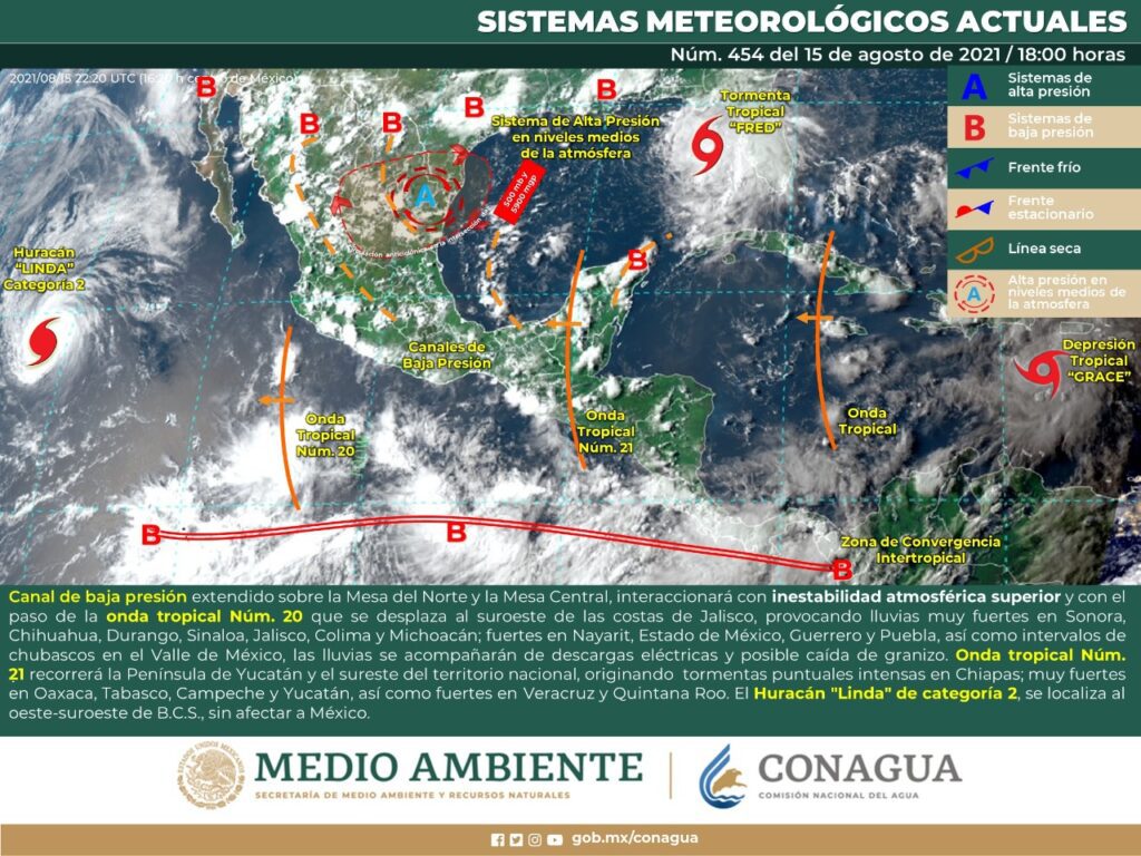Por otro lado, una zona de baja presión al norte de las Bermudas tiene un 90% de probabilidad de evolucionar a un ciclón tropical en las próximas 48 horas. Ya se mantiene vigilancia en el Atlántico por otros dos fenómenos, la tormenta tropical “Fred” a 605 kilómetros al noreste de Cabo Catoche; y la depresión tropical “Grace”, a 2 mil 100 kilómetros de Cancún. Ninguno representa riesgo para México.