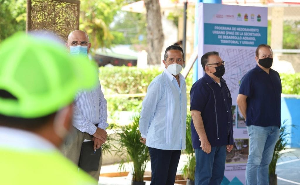 Tulum. – El gobernador Carlos Joaquín asistió al anuncio de la inversión de más de 100 millones de pesos para el “Programa de Mejoramiento Urbano” en el primer cuadro de Tulum, con el que se busca fortalecer un crecimiento ordenado y sustentable en el municipio.