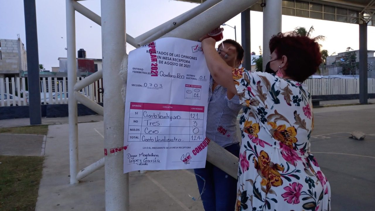 Playa del Carmen.- Con una participación inferior al 10% concluyó la consulta popular en las distintas mesas instaladas en el estado, de acuerdo a estimaciones de los presidentes de casilla, lo que indica que al igual que en el resto del país, se quedó muy lejos de la cantidad de votos requeridos para que fuera vinculante.