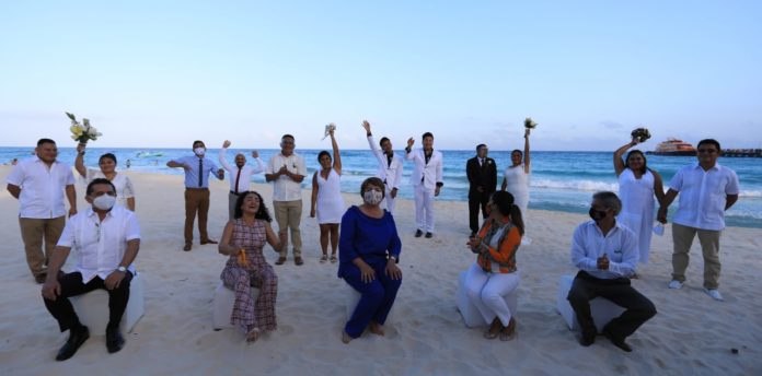 Playa del Carmen.- En Solidaridad continúan las celebraciones de matrimonios gracias al apoyo indiscutible del Gobierno de Laura Beristain Navarrete, quien a través del DIF y el Registro Civil, ha dado todas las facilidades a las parejas que quieran formalizar su unión en el mes del Amor y la Amistad aplicando medidas de higiene, seguridad y sana distancia para evitar contagios por COVID-19.