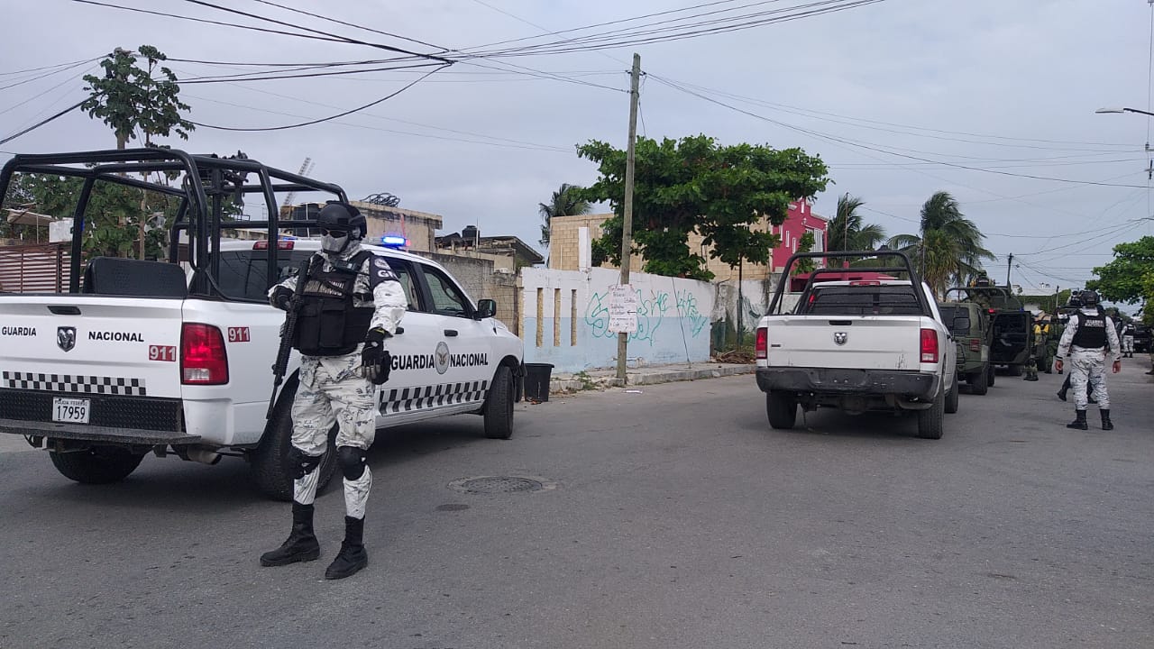 Horas antes, la violencia se apoderó de las calles de Cancún al registrarse balaceras, persecuciones, detenciones, accidentes vehiculares con saldo de varios elementos de la Guardia Nacional lesionados.