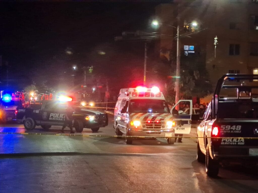 Ambulancias se encargaron de llevarse al sobreviviente del ataque, mientras agentes de la Policía Quintana Roo acordonaron la zona, en espera de los servicios periciales de la Fiscalía General del Estado.