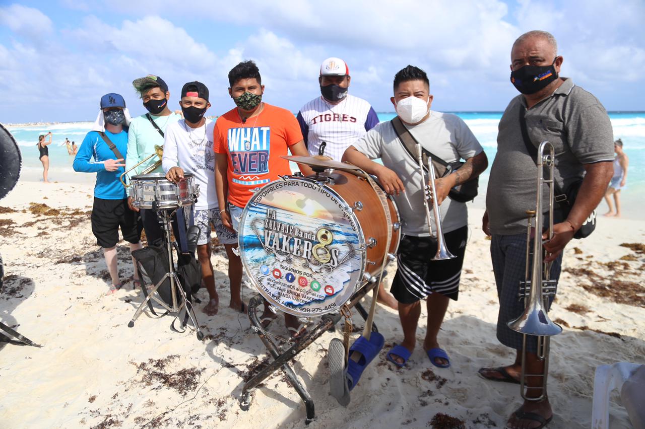 De estilo cien por ciento sinaloense, esta agrupación de origen quintanarroense, se vio obligada a cambiar los escenarios privados por las calles y hasta la playa para subsistir. Y es que el gremio de los músicos, es uno de los sectores que sigue sin poder reactivarse en el país por la contingencia sanitaria.