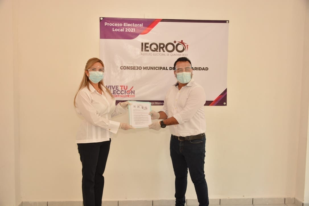 La aspirante de la coalición PAN-PRI-PRD-CxQ acudió al Consejo Municipal del Instituto Electoral de Quintana Roo (Ieqroo), para efectuar su registro.