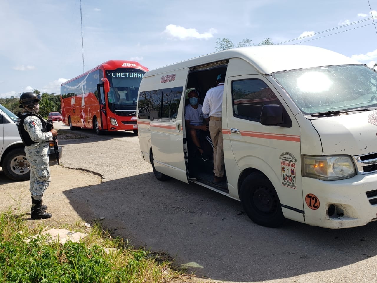 Felipe Carrillo Puerto.- Agentes del Instituto Nacional de Migración (INM) y de la Guardia Nacional (GN) implementaron un operativo en las afueras de la ciudad, para la revisión de documentos de personas que pudieran estar en este país de manera irregular, identificando a un hombre colombiano, quien fue trasladado a las oficinas centrales en Chetumal.