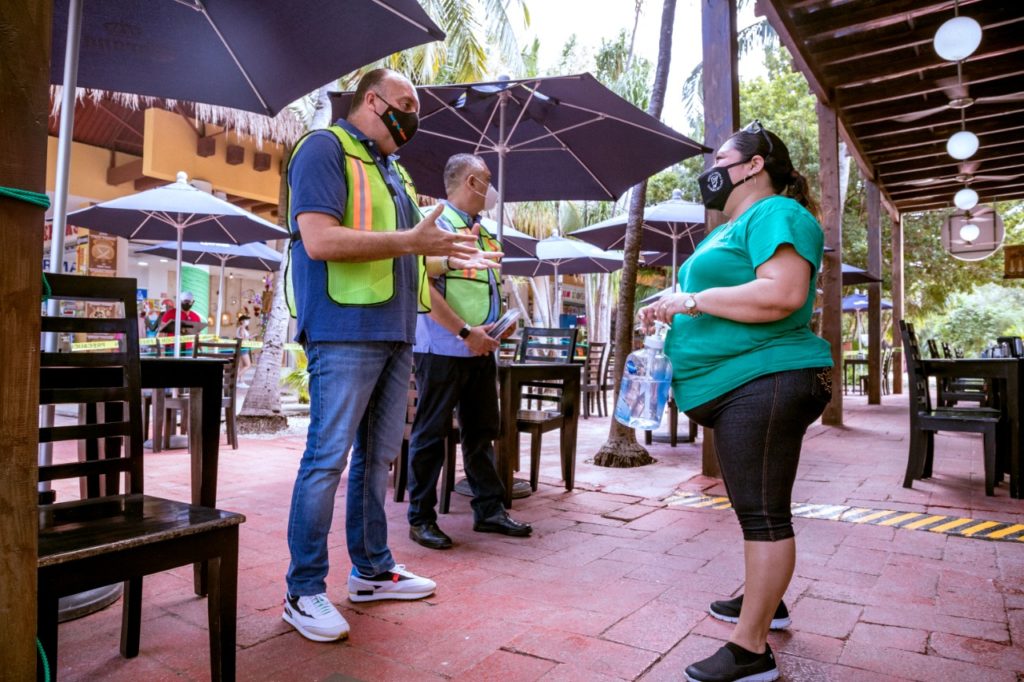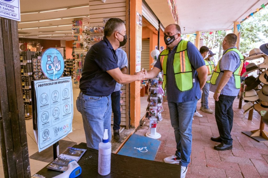 “La salud es lo más importante, de los que vienen a trabajar diariamente, sus familias nuestros visitantes, por eso desde el inicio de la pandemia realizamos esta labor y continuaremos, hemos visitado diversos giros, hoy la zona arqueológica, recientemente los supermercados, el centro de la ciudad, la zona costera y sucursales bancarias la semana entrante, es instrucción del presidente municipal, Víctor Mas Tah y el gobernador del estado, Carlos Joaquín González, no bajar la guardia en esta labor por evitar contagios y sólo trabajando en conjunto con los empresarios, locatarios y la ciudadanía podemos evitar llegar al color rojo del semáforo epidemiológico y que se cierren los locales”, expresó el tesorero.