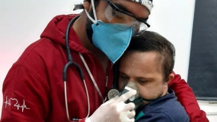 La imagen virilizada en distintas redes sociales, refleja el riesgo de contagio al que se expuso Raimundo Nogueira, un enfermero de 38 años, para abrazar y quitarle el miedo a Emerson Junior, un paciente de 30 años con dificultades respiratorias derivadas del covid-19 que empezaba a asustarse.
