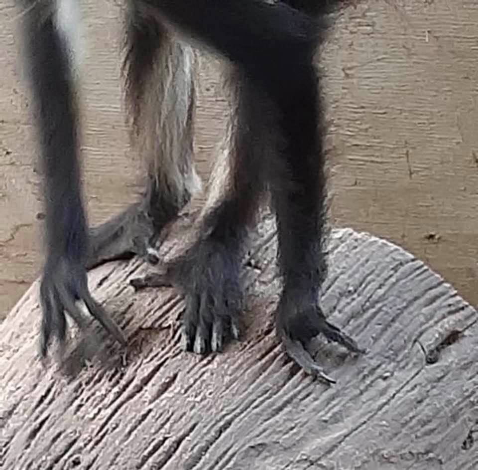 Playa del Carmen, Quintana Roo.-Un ejemplar de mono araña, especie en peligro de extinción que vagaba por las calles de Playa del Carmen y al parecer escapó del cautiverio donde se hallaba, fue rescatado por animalistas aunque infortunadamente tuvieron que amputarle algunos dedos y un pedazo de cola por la mala condición en que estaba.