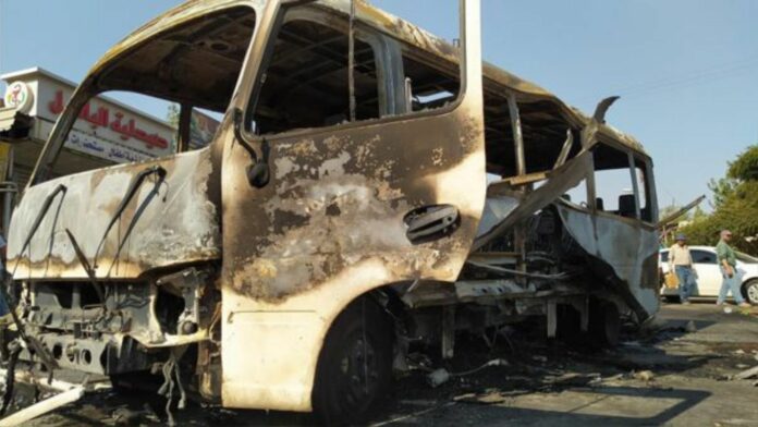 “Según las primeras pesquisas, la explosión (del autobús) fue causada por un cortocircuito, lo que provocó la explosión del tanque de combustible en el autobús, causando la muerte del conductor y otras 3 personas resultaron heridas”, según SANA.
