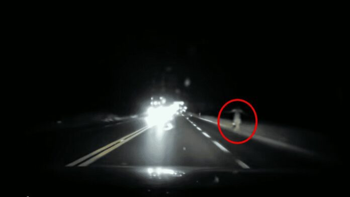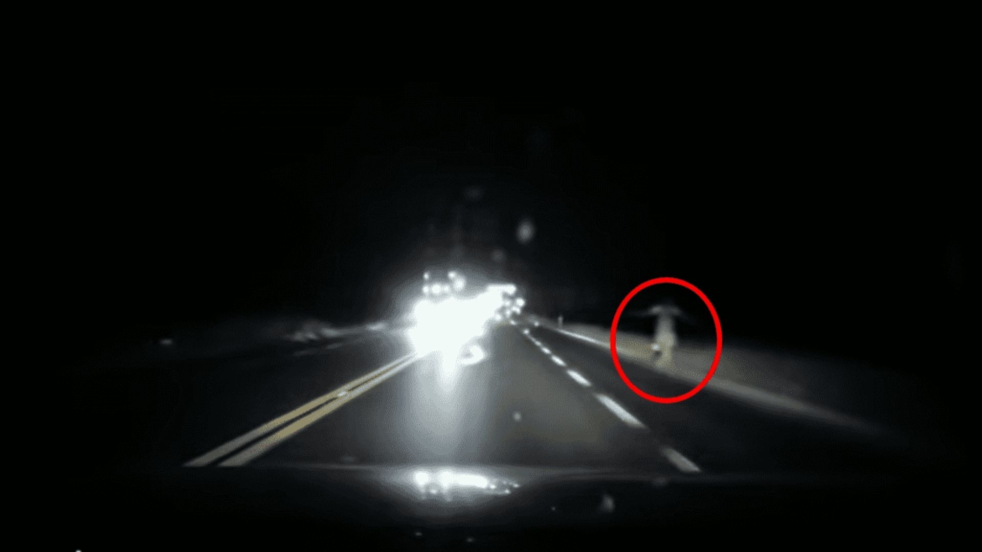 En redes sociales fue difundido un video que muestra el momento en que aparece una extraña figura, supuestamente fantasmal, en una carretera de México.