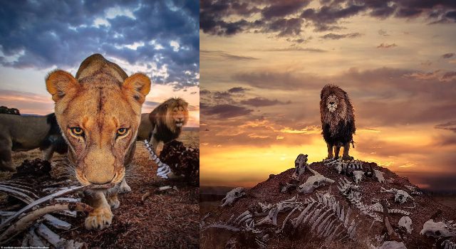 La fotografía de animales silvestres es bastante hermosa, pero también implica muchos factores además del talento del fotógrafo. En este sentido, en muchas ocasiones enfrentan diversos percances para obtener una imagen memorable. Sin embargo, el fotógrafo británico Simon Needham logró capturar la imagen de un león macho de 500 libras. Éste se encontraba sobre una pila de huesos, lo más impactante de la fotografía es que fue tomada mientras el sol nacía a lo lejos.