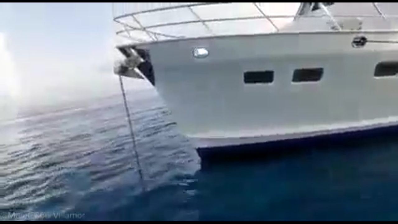 Este yate tiene el ancla tirada, pese a estar esto prohibido dentro del parque nacional, por el daño que esto genera en el coral.