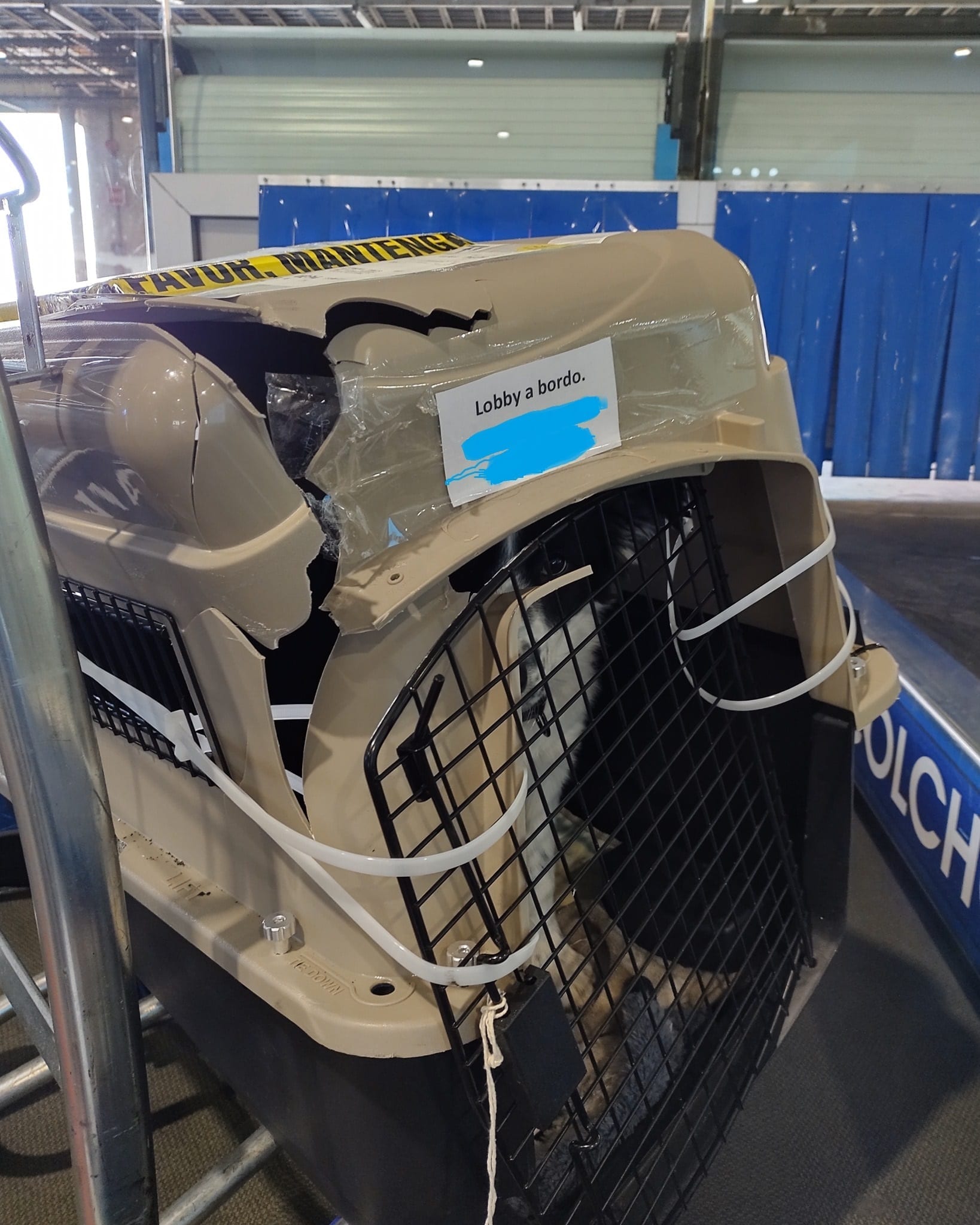 En redes sociales la cuenta TOEFL Intensive Course, informó que la empresa Aeroméxico la hizo pasar un tremendo susto y coraje por lo que le hicieron a la caja transportadora donde viajaría su perro documentado, la cual estaba totalmente abollada; por suerte el cachorro salió ileso.