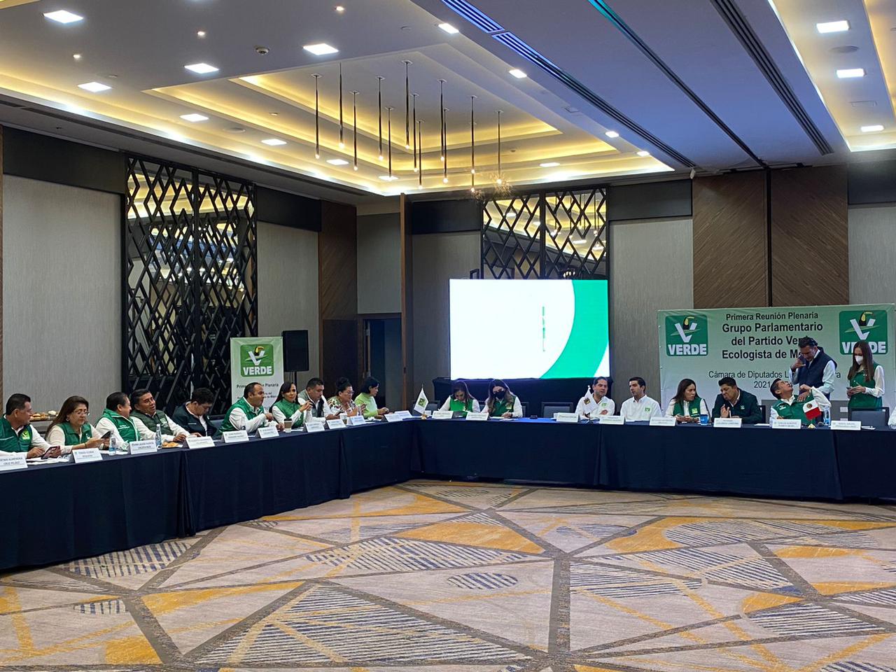 Los diputados federales del PVEM sostuvieron hoy una reunión de trabajo con el gobernador electo Gallardo Carmona, ofrecieron una conferencia de prensa conjunta y asistieron a una comida con la que concluyó su evento.