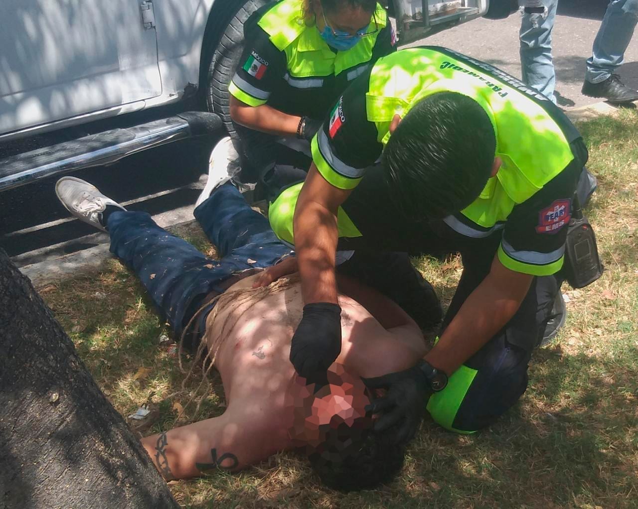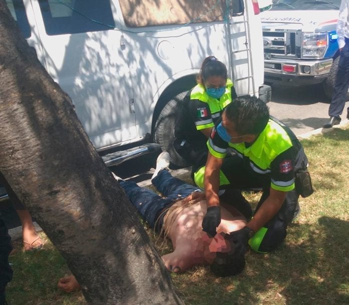 Alrededor de la 1 de la tarde se pidió apoyo de la policía y los servicios médicos porque unos sujetos estaban golpeando un hombre y que tenían en el camellón central de la avenida Nichupté, frente a una plaza comercial.
