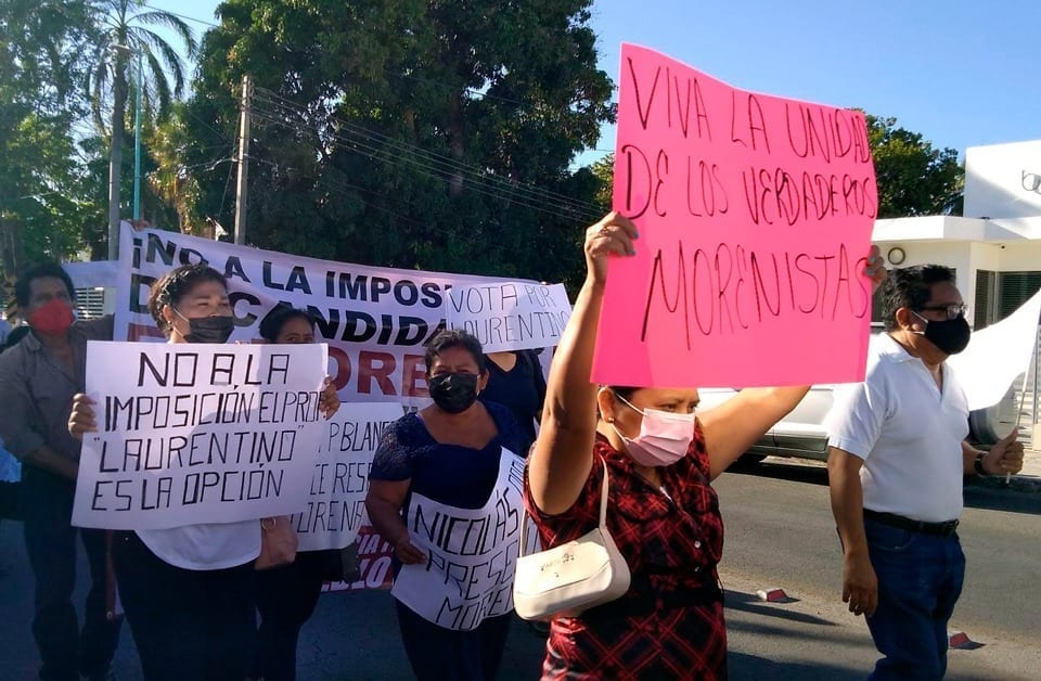 “Morena es unidad de los morenos, por ello hago esta llamada de atención a esas personas que no estamos dispuestas a los dedazos e imposiciones; que esas personas sepan que nosotros los verdaderos morenos sí estamos unidos”, apuntó el vocero de los inconformes, Armando Rodríguez Hidalgo.