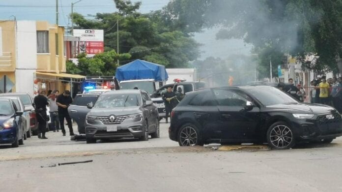 En el material se apreciaban camionetas abandonadas, sangre e incluso algunos cuerpos dispersados en el suelo. Posteriormente, las autoridades informaron que habían cuatro muertos y una persona herida.