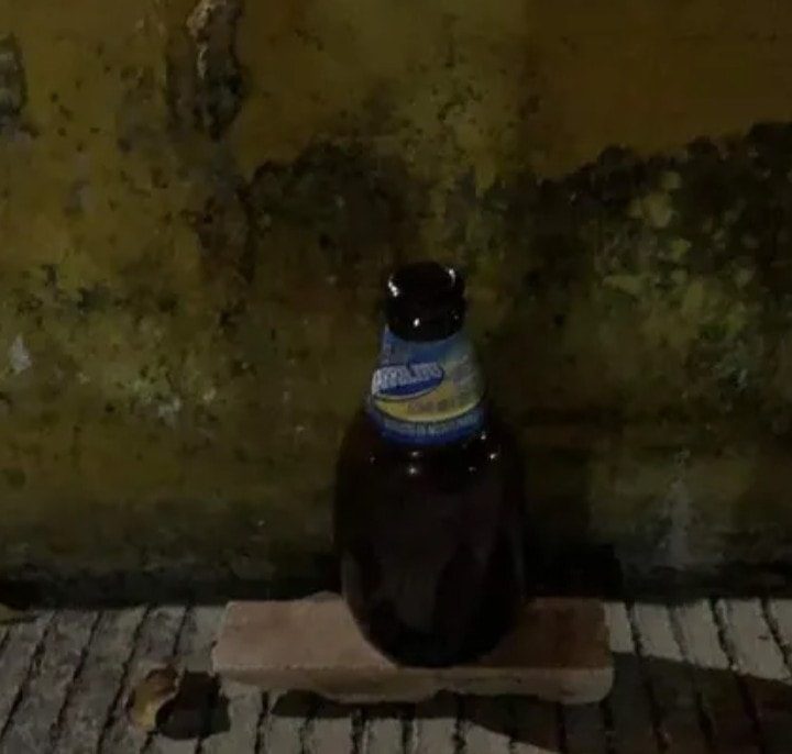 Aunado a la denuncia, mostró una fotografía donde claramente se logra ver una botella de cerveza y debajo de la misma hay una piedra, Guadalupe recalcó que los presuntos criminales tienen diferentes señas, pues en otras solo dejan piedras y no botellas y en otras casas solo la botella pero no piedras.