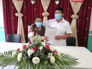 La Oficial del Registro Civil, Alejandra Chan Dzul, explicó que el Ayuntamiento apoyó a las parejas que ya vivían en unión libre, para que contraigan nupcias de manera gratuita, y destacó que el número de parejas presenciales fue reducido este año para evitar la propagación de la enfermedad de la COVID-19.