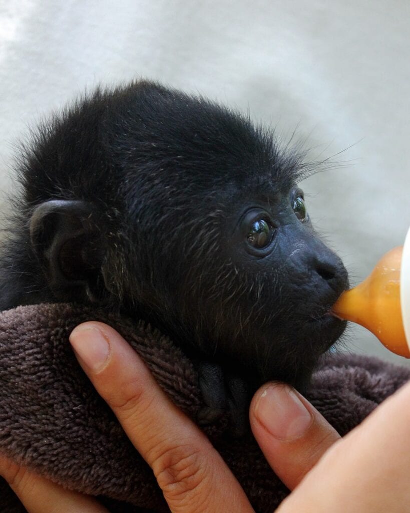 Akumal, Quintana Roo.-Este bebé mono fue hallado en los brazos de su mamá muerta a manos de cazadores en la Reserva de la Biosfera Calakmul, en Campeche; por suerte fue rescatado y llamado “Muuk”, que significa “fuerza” en lengua maya, pero todavía necesita de apoyo.