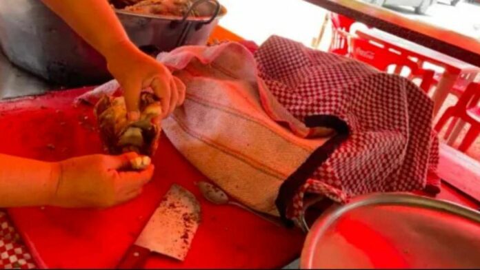 Cancún.- Luego de que se hiciera viral la imagen sobre un aparente colmillo de perro y que el responsable de dicha foto afirmó que lo encontró dentro de su plato de barbacoa en un establecimiento que está sobre la avenida Lak’i, en la ciudad de Cancún, este día la dueña del establecimiento ‘El Güero’ demostró que vende carne de borrego y no de perro.