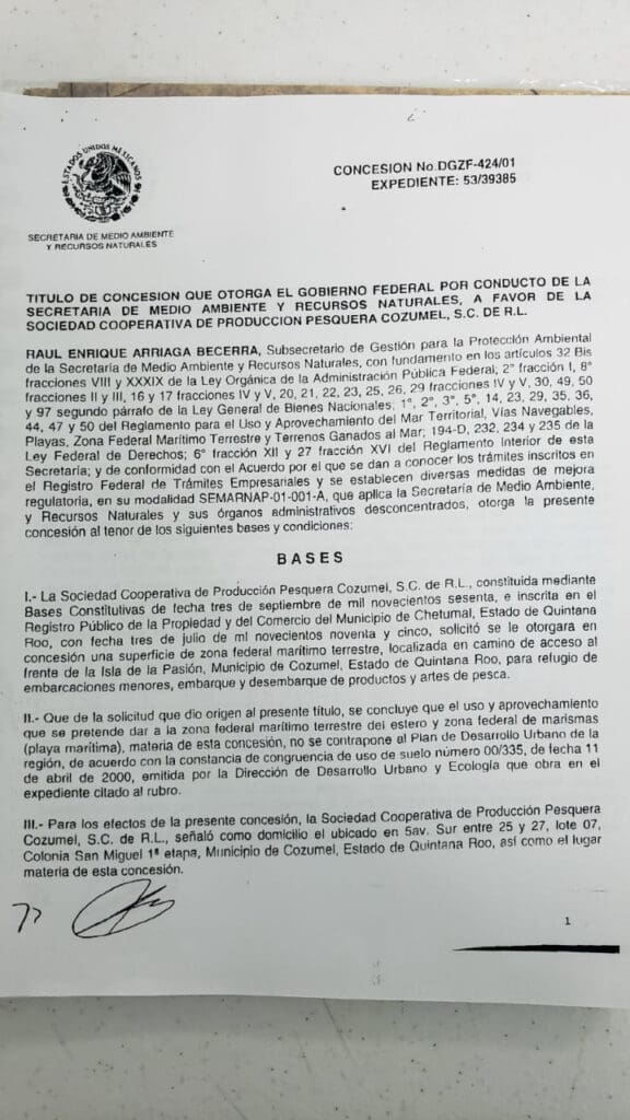 Este muelle les está concesionado a la Sociedad Cooperativa de Producción Pesquera Cozumel desde hace 20 años, pero se supone que únicamente es para aprovechamiento pesquero. Sin embargo, en una inspección, personal de la Dirección de la Zona Federal Marítimo Terrestre (Zofemat), descubrieron que el lugar es usado para embarcar a turistas para ser llevadas a la Isla de la Pasión.